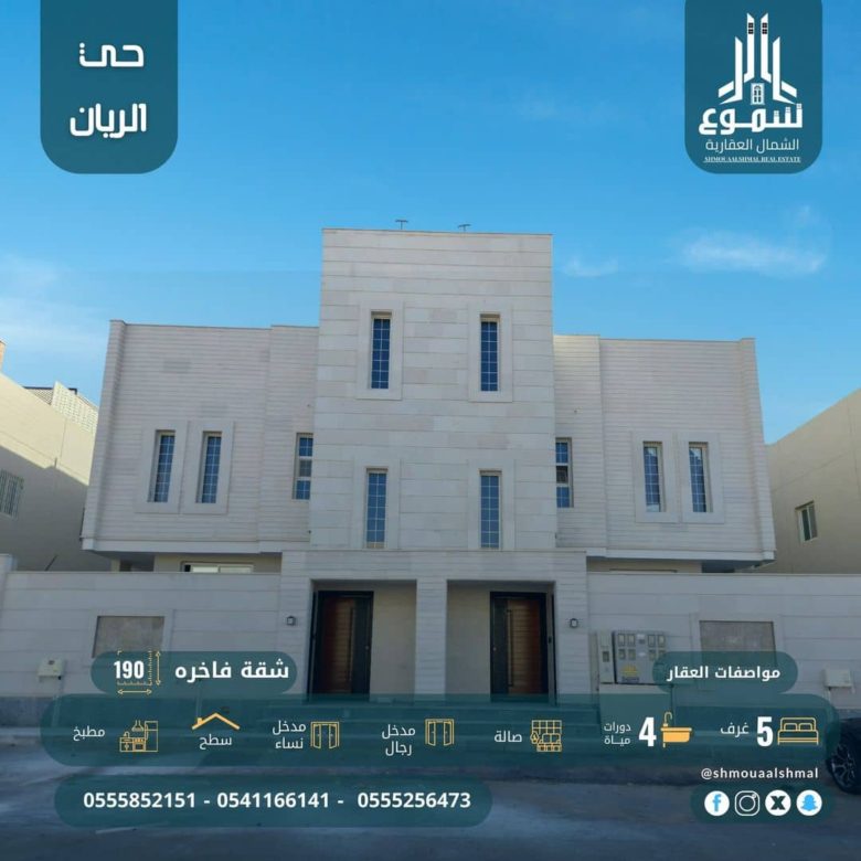 شقة فاخرة 5 غرف بحي الريان